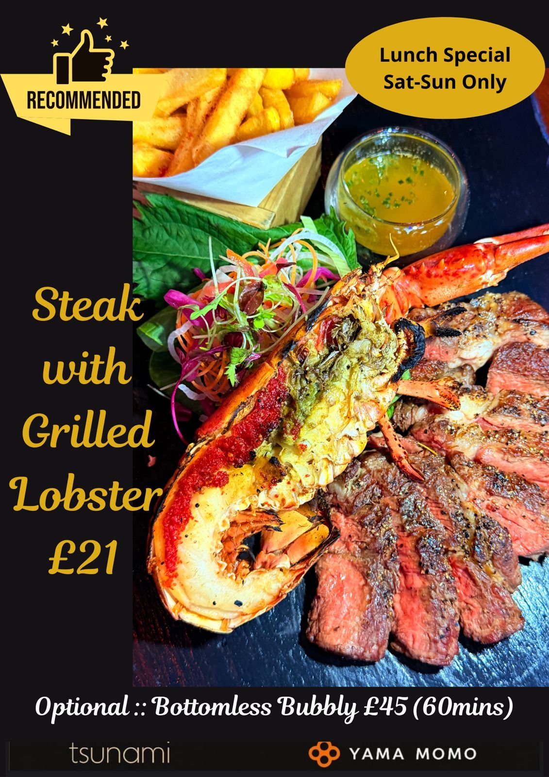 Chargrilled steak with butter-kissed lobster—a mid-week showstopper made to share (or not).